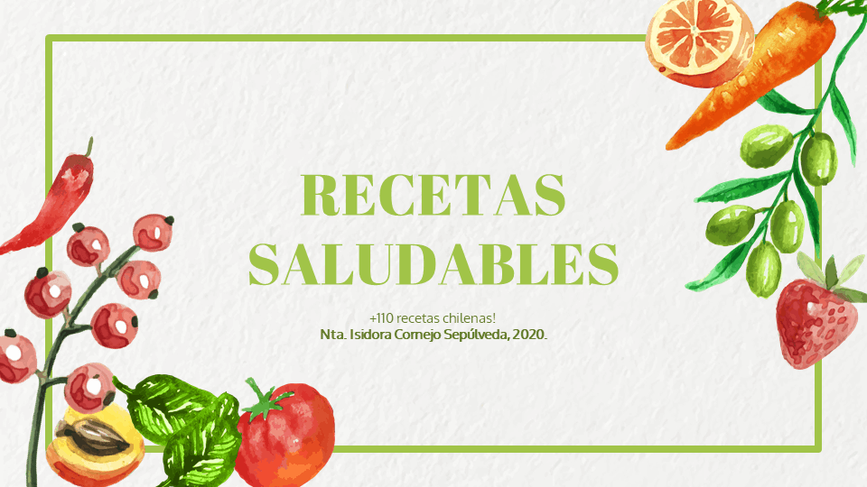110+ Recetas Saludables, con cálculo de Macronutrientes calculados por porción, distribuidos en Desayuno/Once, Entradas/Ensaladas, Almuerzo/Cena, Postres y de «yapa» recetas vegetarianas y sin gluten incluidas.